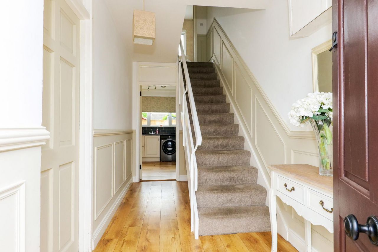 Built in 1970, the property itself is beautifully decorated throughout. The entrance hall is subtly decorated with bright colours that reflect the natural light streaming in from the porch windows. Wood flooring extends into the sitting room on the left and the kitchen/dining room at the back.