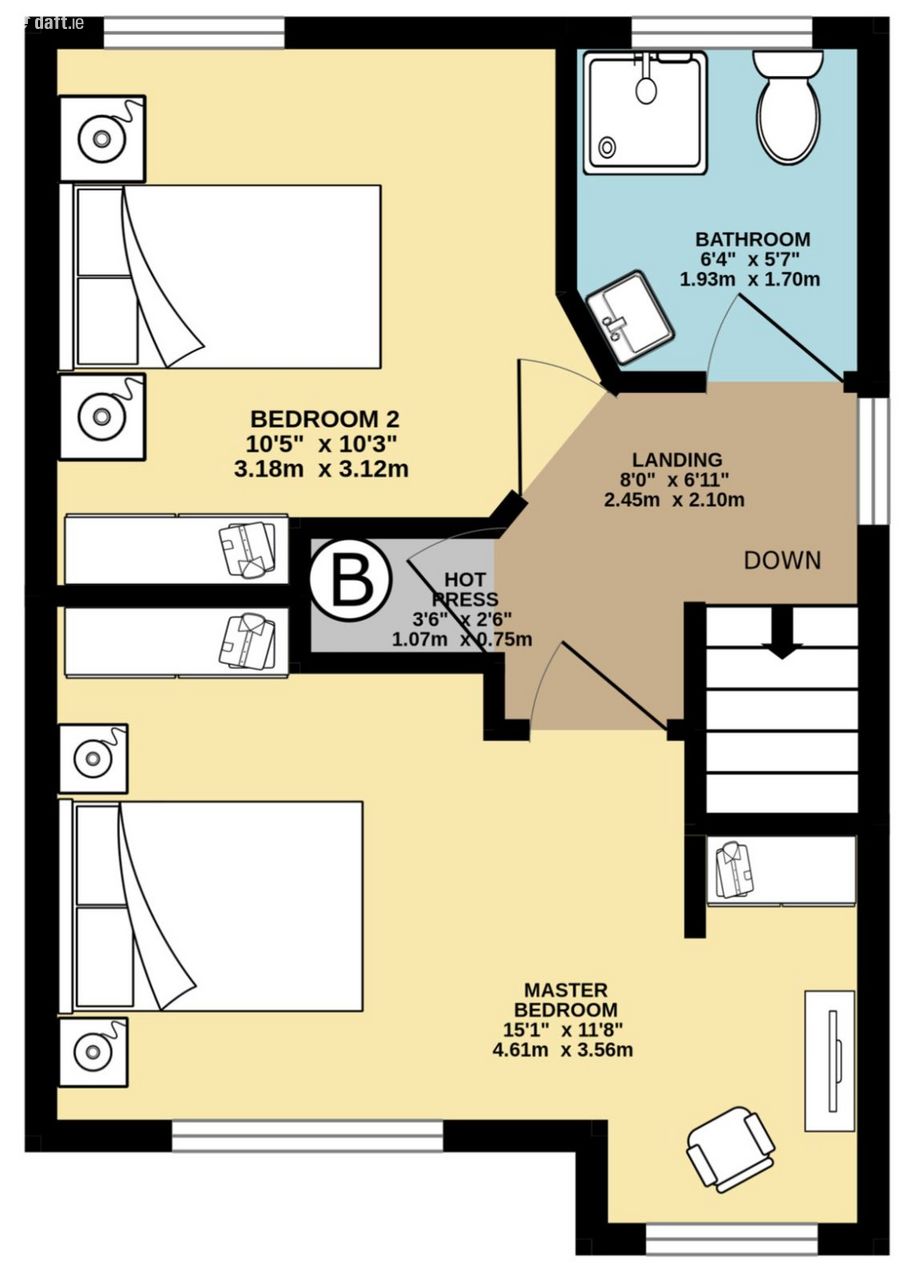 Upstairs accommodation includes two double bedrooms and an impressive new contemporary bathroom / Wet Room.